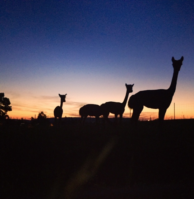 Nachdem es so allmählich dunkel wurde, wollte ich weiter entdecken. Ich lief einfach weiter und freute mich was mir sonst noch Tolles begegnen würde. Allmählich war ich auf einer Wiese angekommen. Und es raschelte vor mir plötzlich. Was ist denn da? In der Dunkelheit erkannte ich so langsam Silhouetten. Das sind Vierbeiner. Aber irgendwie exotisch. Sind das Kamele? Lamas? So langsam gewöhnten sich meine Augen an die Dunkelheit und ich konnte erkennen, was vor mir war Alpakas. Kurz schreckhaft. Ich machte daher meine Musik leiser und fing an sie vorsichtig zu beobachten. Es machte Spaß sie einige Minuten anzuschauen. Ihre Scheu verflog schnell und sie wurden auch neugierig. Und so kamen sie ganz nah an mich dran. Noch so ein Moment, den ich nie vergessen werde.